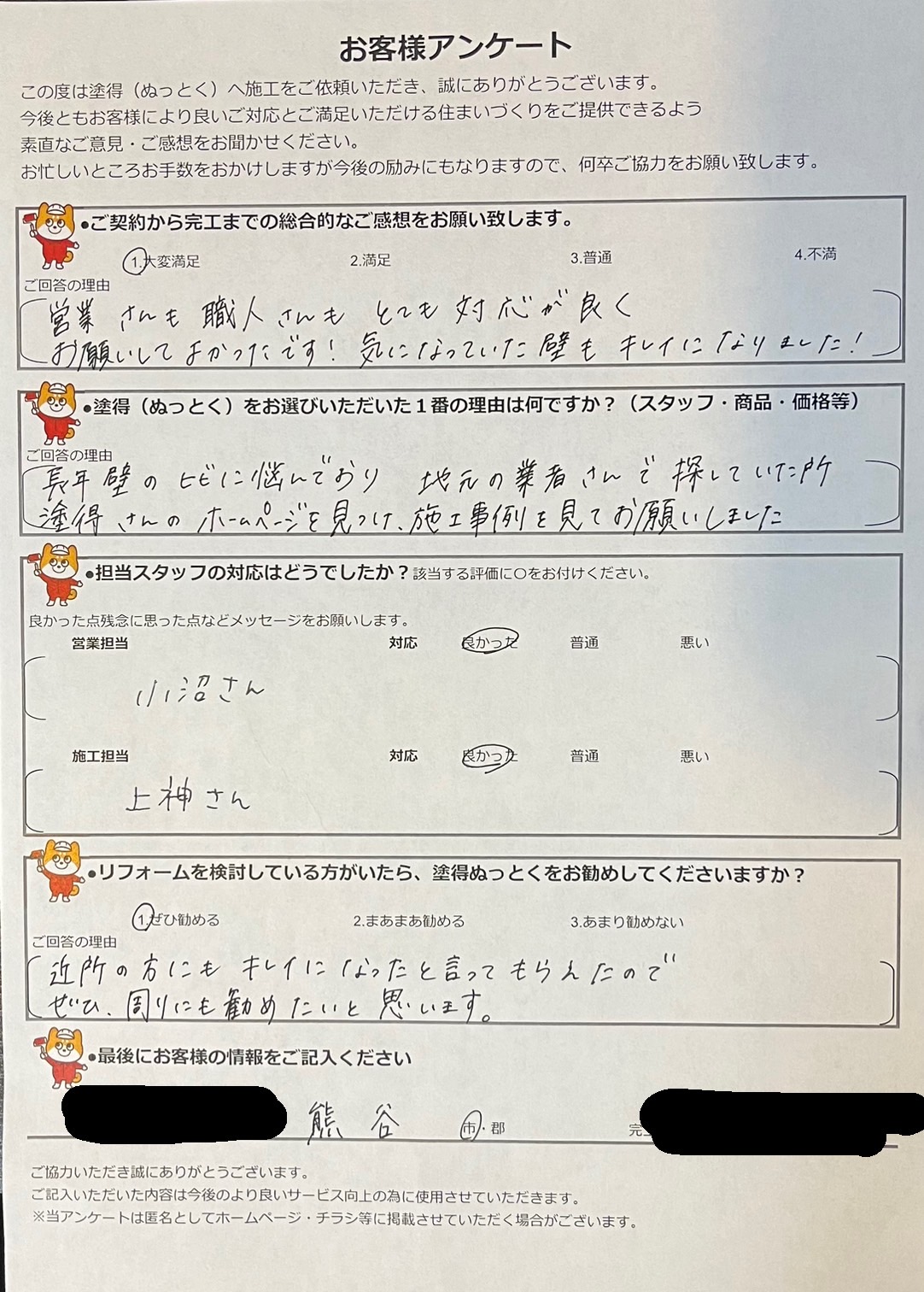 K市M様から嬉しいお声をいただきました! K市M様から嬉しいお声をいただきました! お客様に施工後インタビューしました! 近所の方にもきれいになったと言ってもらえたので是非、周りにも勧めたいと思います。 前の記事 次の記事 一覧へ戻る