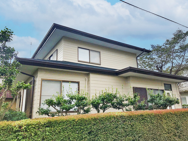 | ご提案内容 | 外壁には日本ペイントのパーフェクトトップを、屋根には日本ペイントのパーフェクトベストをご提案させていただきました。 モスブラウンの屋根がベージュの外壁がよく合う、落ち着いた仕上がりになりました。 |