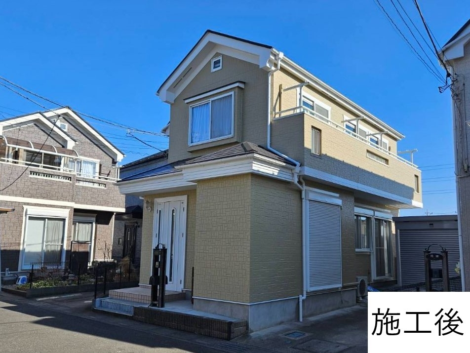| 施工内容 | ・外壁 フッ素3回塗り メーカー:アステックペイント 塗料:フッ素REVO1000 色:クエリー8094 ・屋根 フッ素3回塗り メーカー:ロックペイント 塗料:サンフロンルーフ 色:新ブラウン |